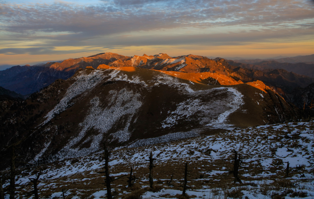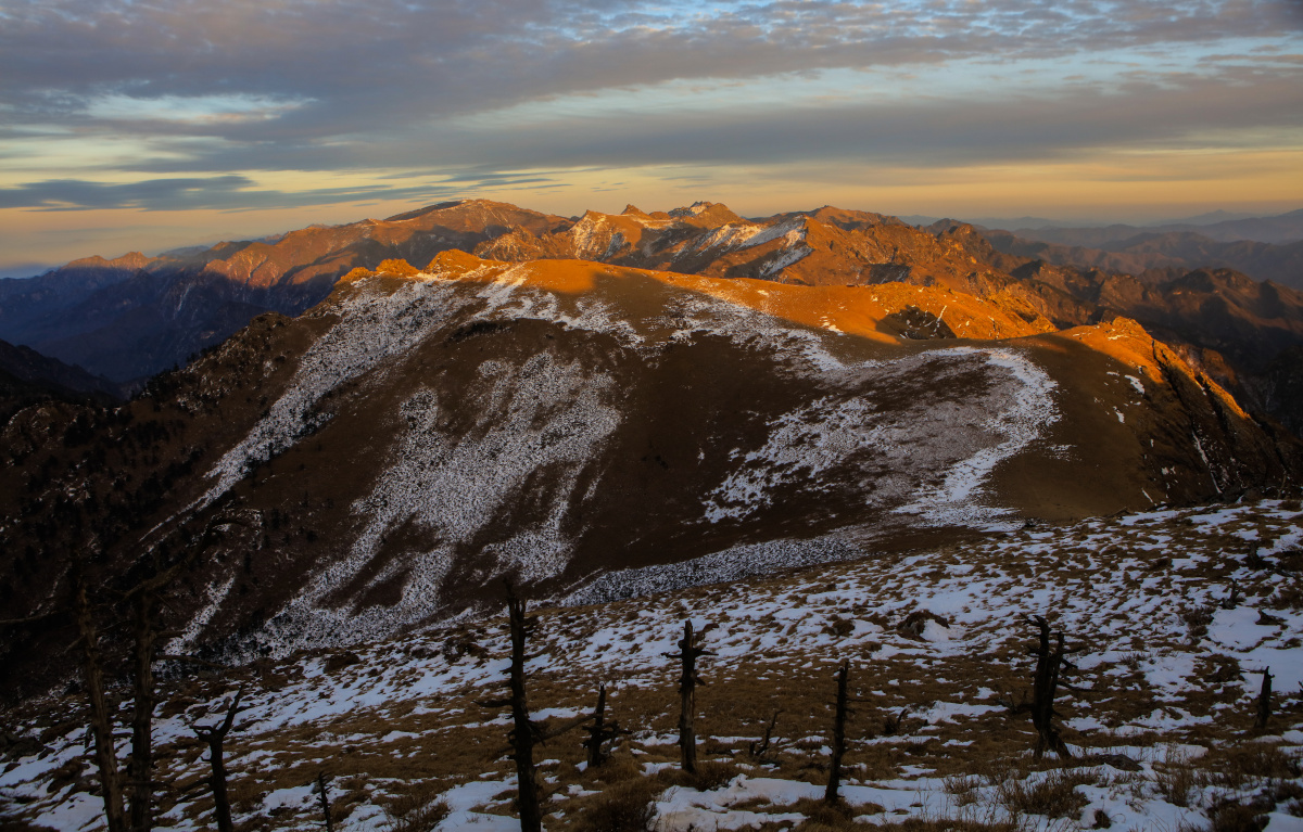 秦岭的金皇冠:夕阳西下,整个秦岭高山之巅一片金黄,宛若皇冠。