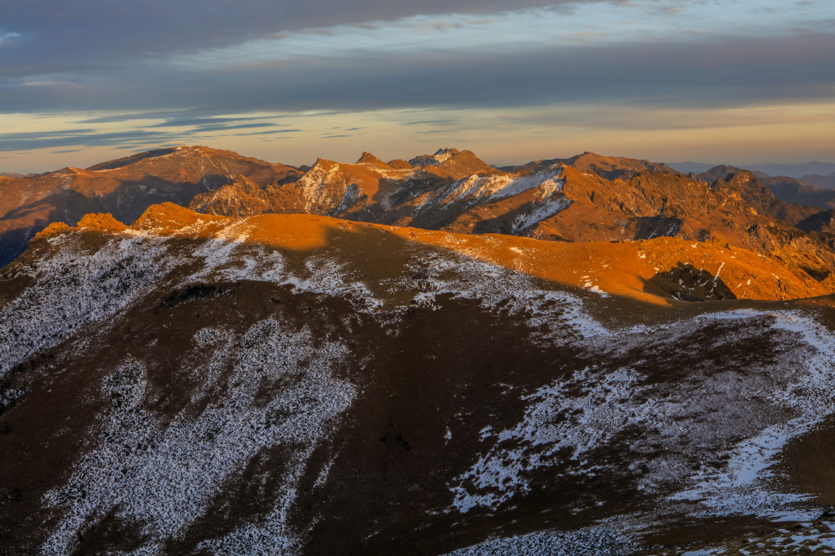 秦岭的日照金山:不是一座山,而是整个秦岭群峰山巅都被染成了金色,壮观,梦幻。