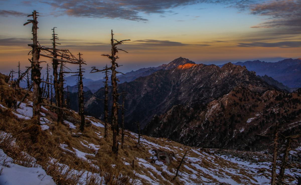 秦岭的最后一抹光晕:站在秦岭跑马梁上,冰晶顶方向,夕阳西下,最后一抹光影,金黄,温暖。