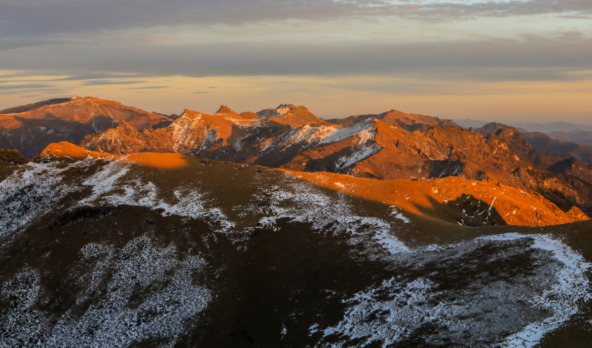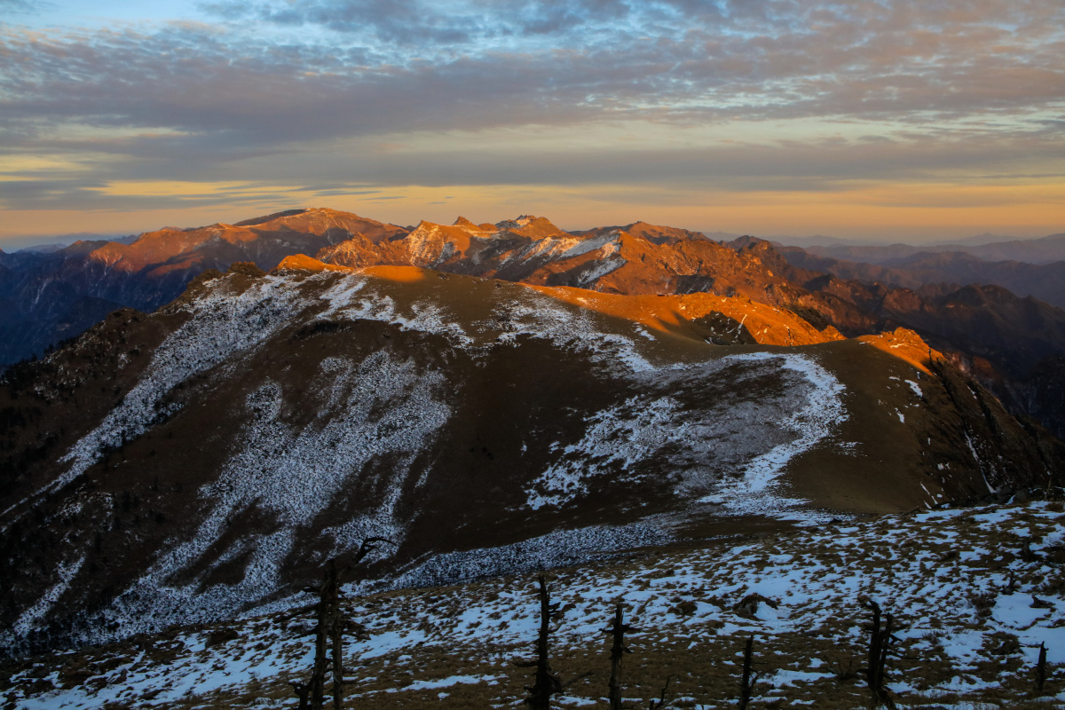 金顶:秦岭,日落时刻,高山之巅,一抹红晕,宛若金色穹顶。
