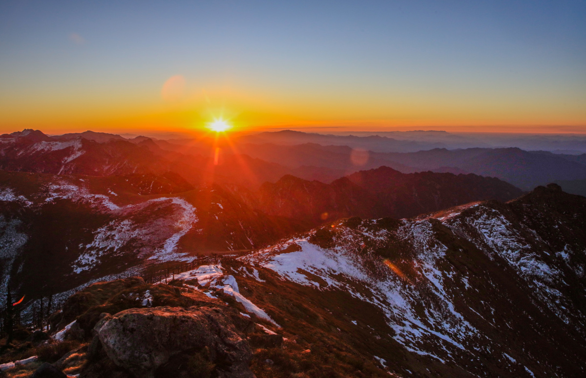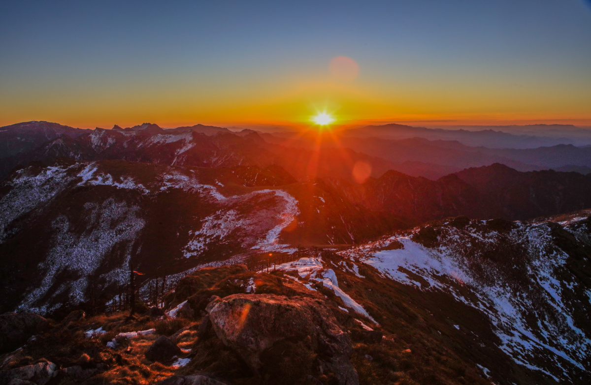 秦岭日出,雪色长龙。群峰皆醒,唯我沉酣。