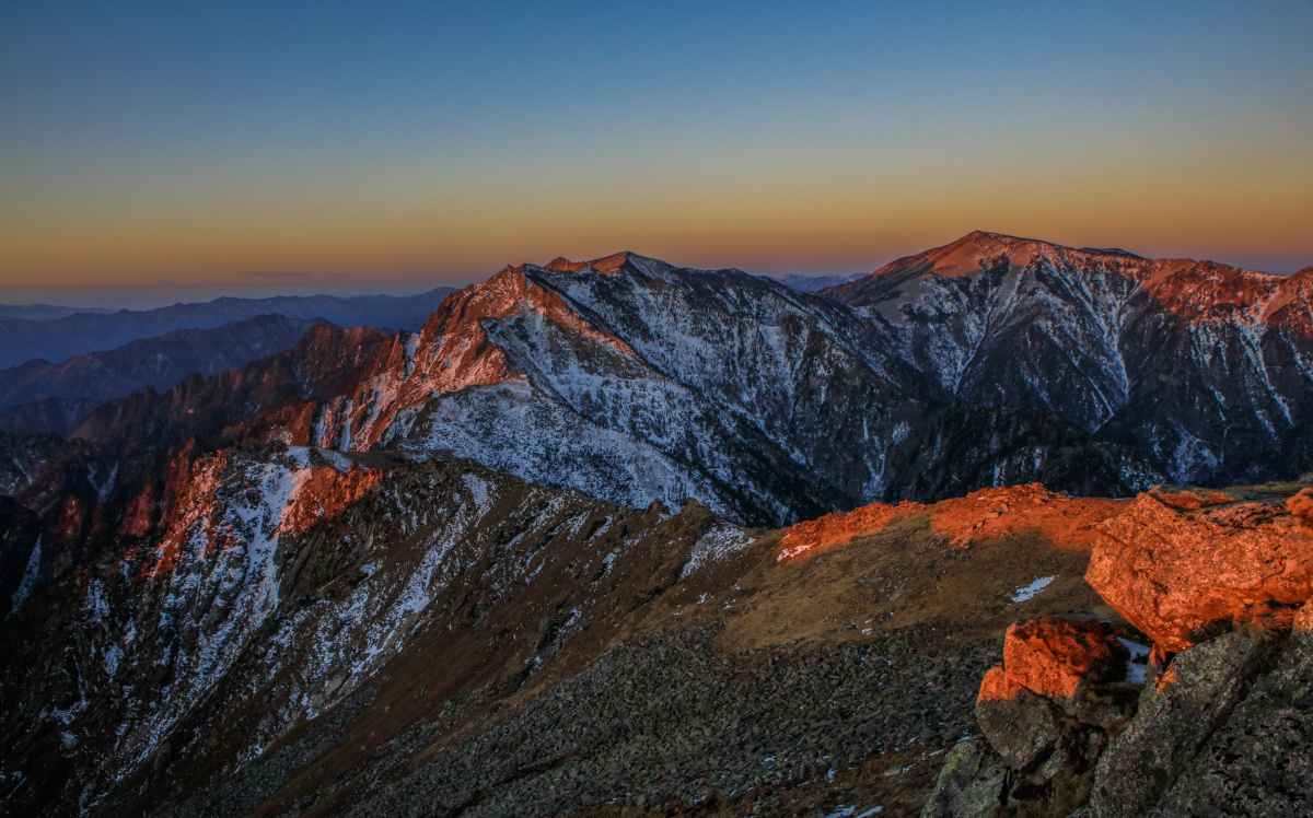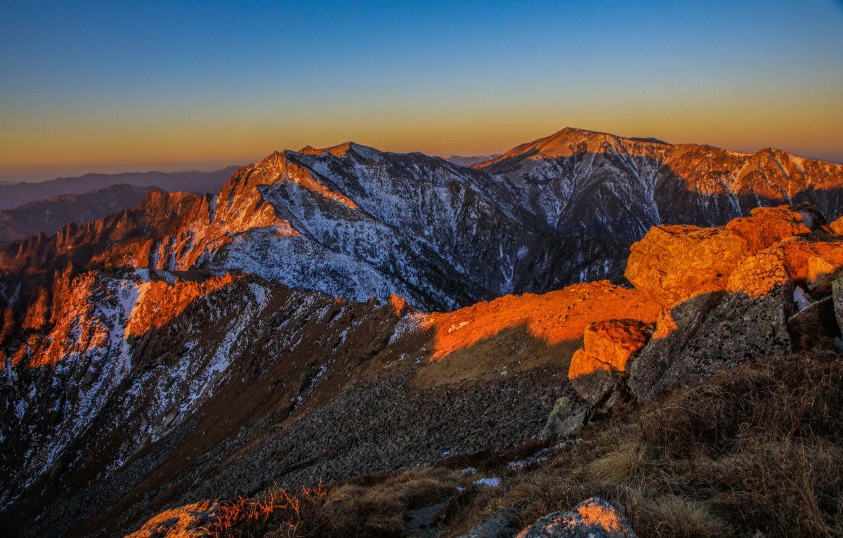 日出秦岭红胜火:日出时刻的秦岭冰晶顶,每一块岩石都化成了赤红暖金。