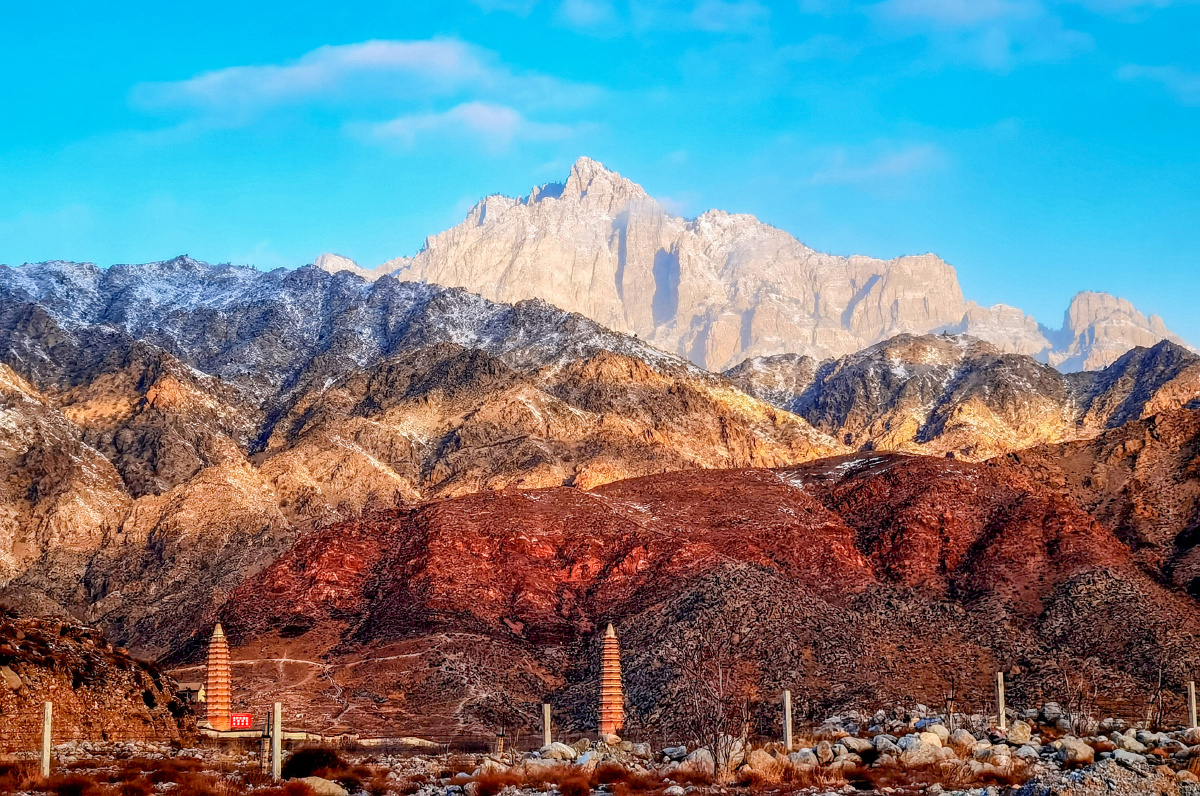 贺兰山双塔:西夏时期古塔,为贺兰山增添一抹韵味。