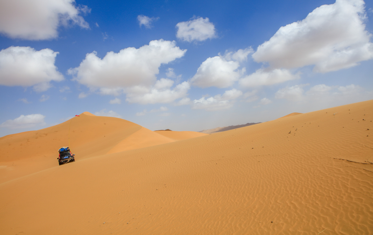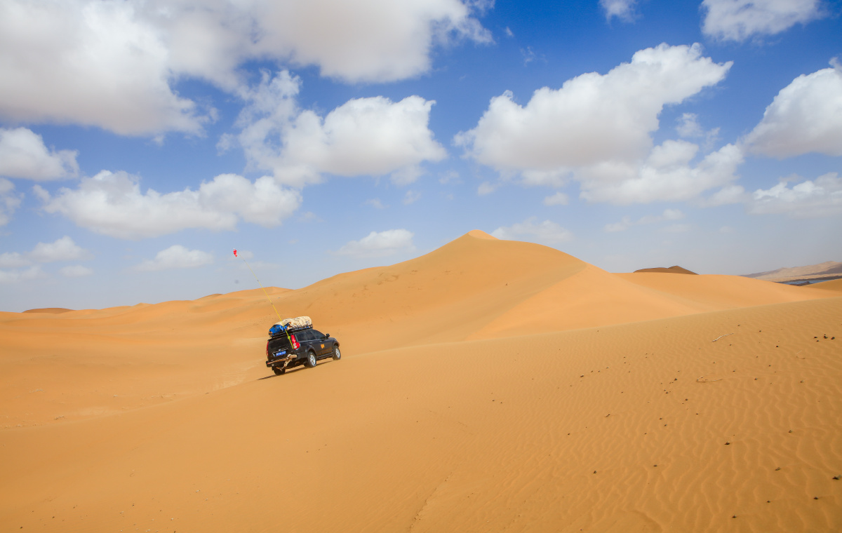 沙海之舟:腾格里沙漠越野穿越,车行沙海,如大海之舟,波涛中前行。